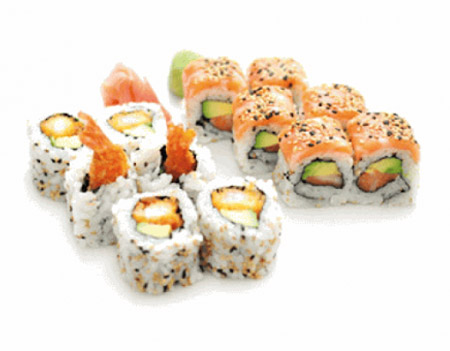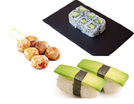 1 riz,6 california avocat concombre,2 sushia avocat,2 brochettes de champignons