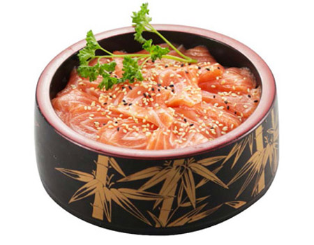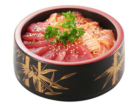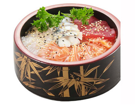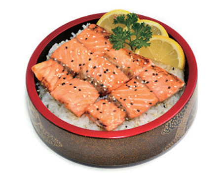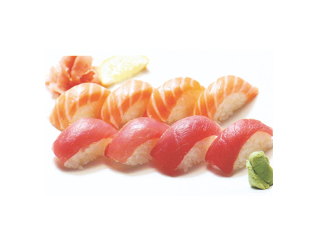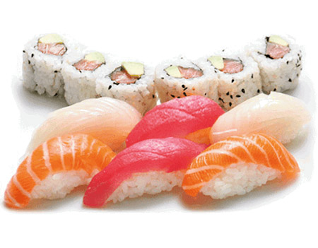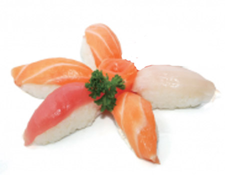 3 saumon, 1 thon, 1 daurade. Entrée au choix : raviolis (6 pcs) ou brochettes (1 poulet, 1 aile de poulet, 1 boulettes de poulet, 1 bœuf au fromage)