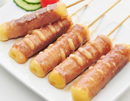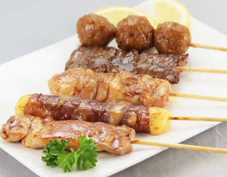4 brochettes de bœuf au fromage. Entrée au choix : raviolis (6 pcs) ou brochettes (1 poulet, 1 aile de poulet, 1 boulettes de poulet, 1 bœuf au fromage)