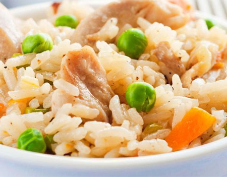 1 soupe, 1 salade, 1 riz, 5 brochettes de bœuf au fromage